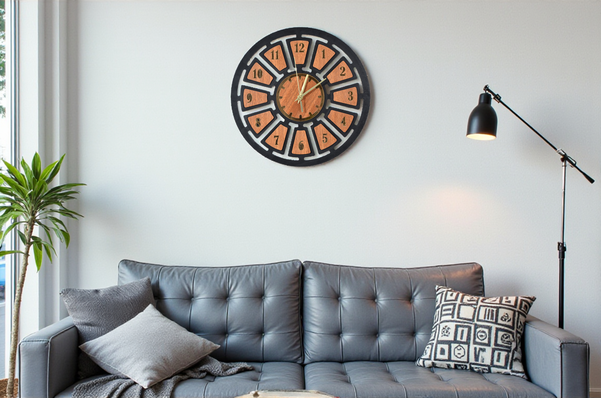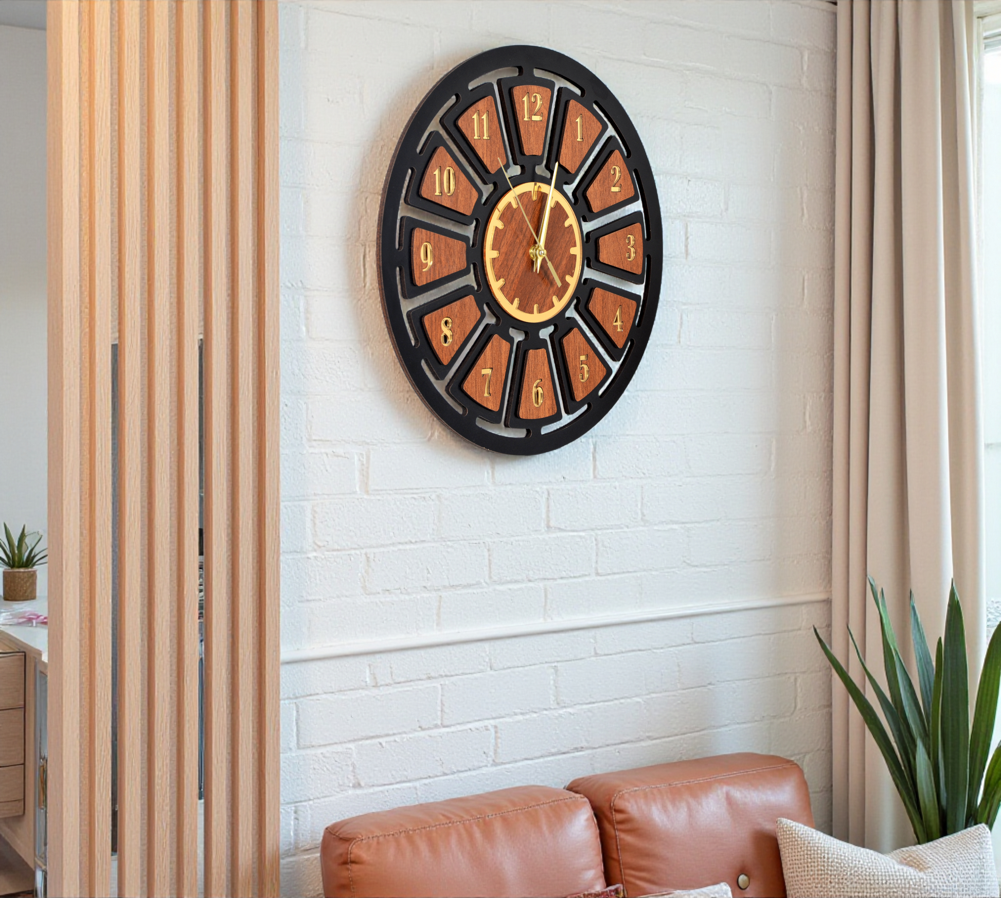Modern Ahşap Duvar Saati - Sessiz Akar Mekanizma & Pleksi Detaylı Duvar Dekoru